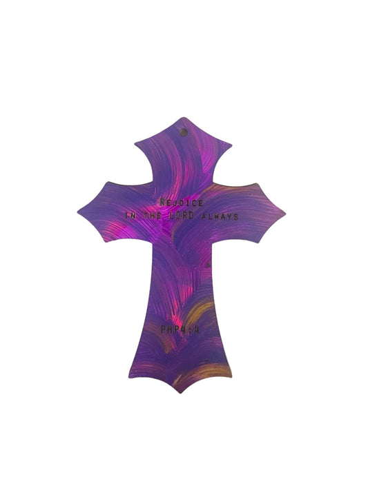 “Rejoice in Lord always!” Hand painted wooden cross [Made to Order]