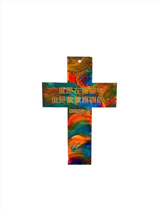 “就是在患難中,也是歡歡喜喜的!” Hand painted wooden cross [Made to Order]