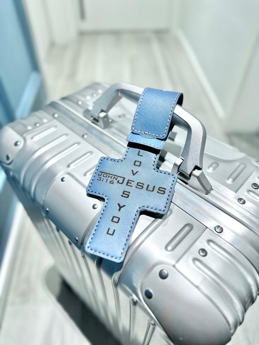 “Jesus loves you” leather luggage tag